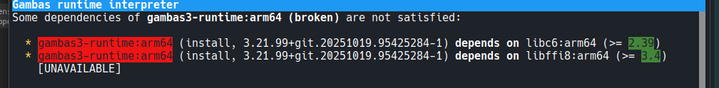 see the provided screenshot I can't install gambas master because of dependencies problem -- Fabien Bodard