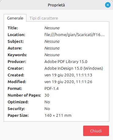 Il 29/11/25 16:22, Claus Dietrich ha scritto:Am 29.11.25 um 15:53 schrieb gbWilly:It has the same problem. Gianluigi pointed me to your pdfviewer and I downloaded and tested it. Your code it not that different from mine.Giunluigi provided a link to some PDF 1-7 format files to test. gbWillyIndeed! With these PDFs my app is crashing. On first sight it looks to me as if the treeview is loaded properly with keys but when I select an index my app crashes because the key returned from the treeview is gone ... they are all gone ... very wierd. So on first sight it rather looks to me as if it relates to the treeview and how it is populated (depending on index parents resp. children). I don't believe that it depends on the PDF version.I need some time to understand and test my old code and will come back in case of new findings.Best regards ClausHi, I made a disturbing discovery. Even PDF files in 1.4 format can cause the same problem.Convinced that, like the others, it was in 1.7 format, the file indicated to Benoit (which cannot be downloaded here) is in 1.4 format, see attached image. But like those posted on Pastebin (1.6 and 1.7), the page number is not returned!So it's not the format number that matters, but how it was formatted? Regards Gianluigi